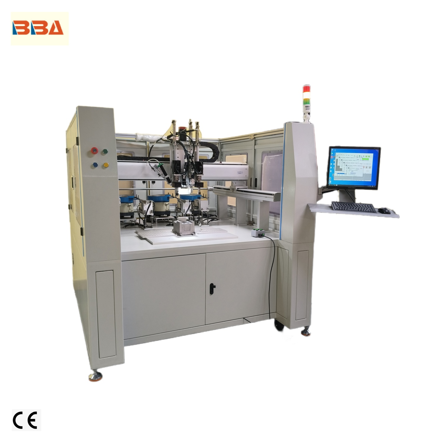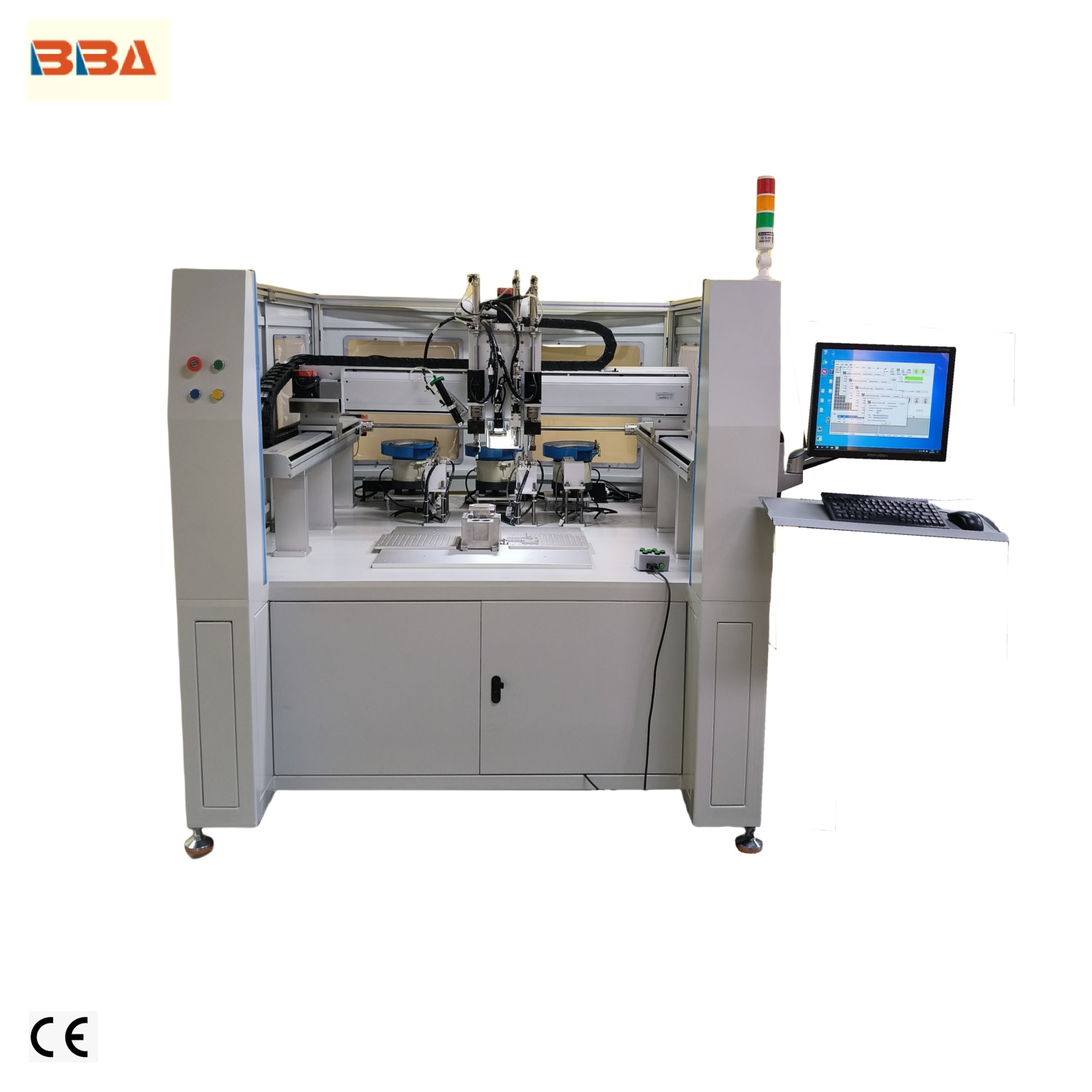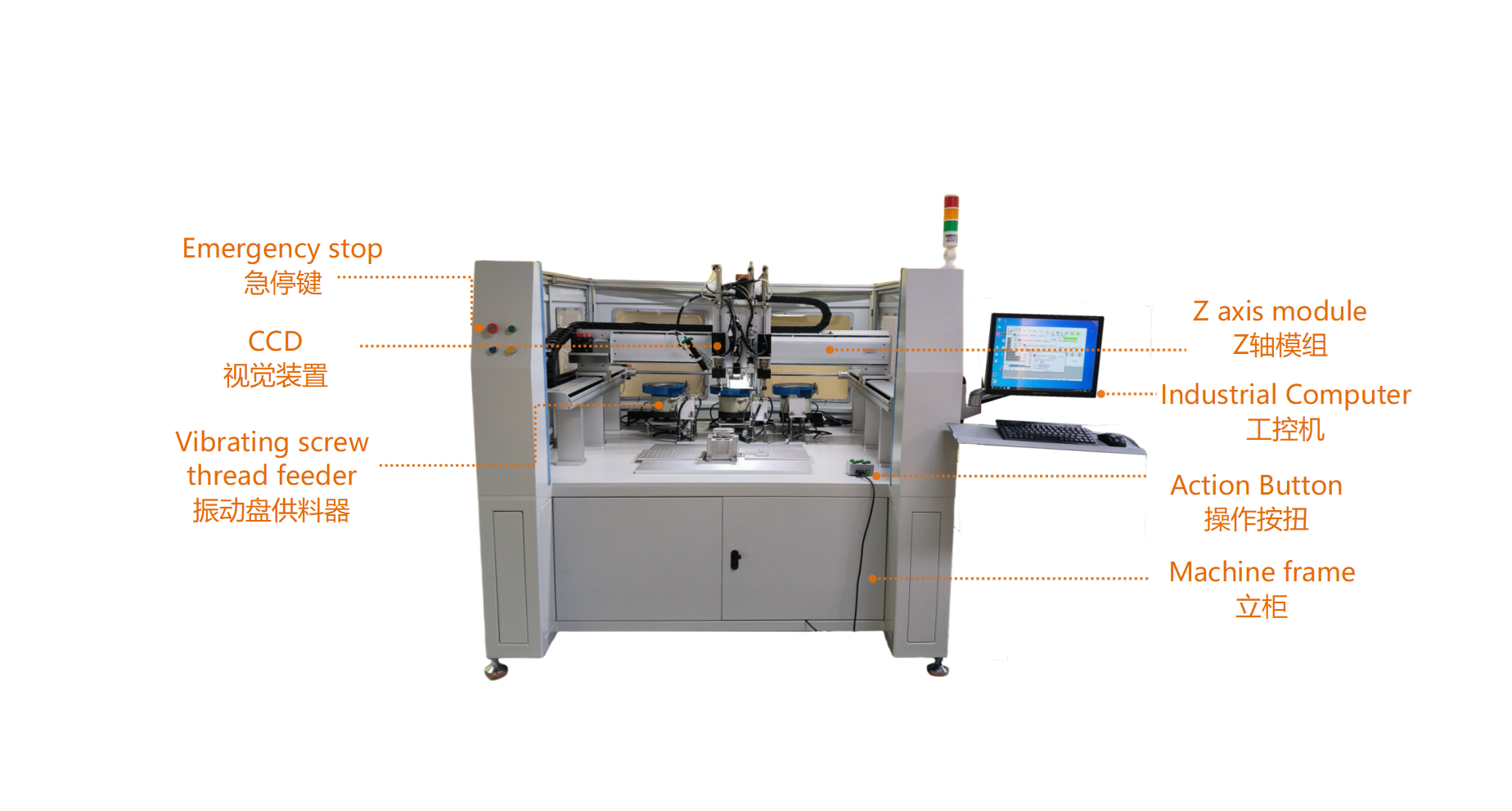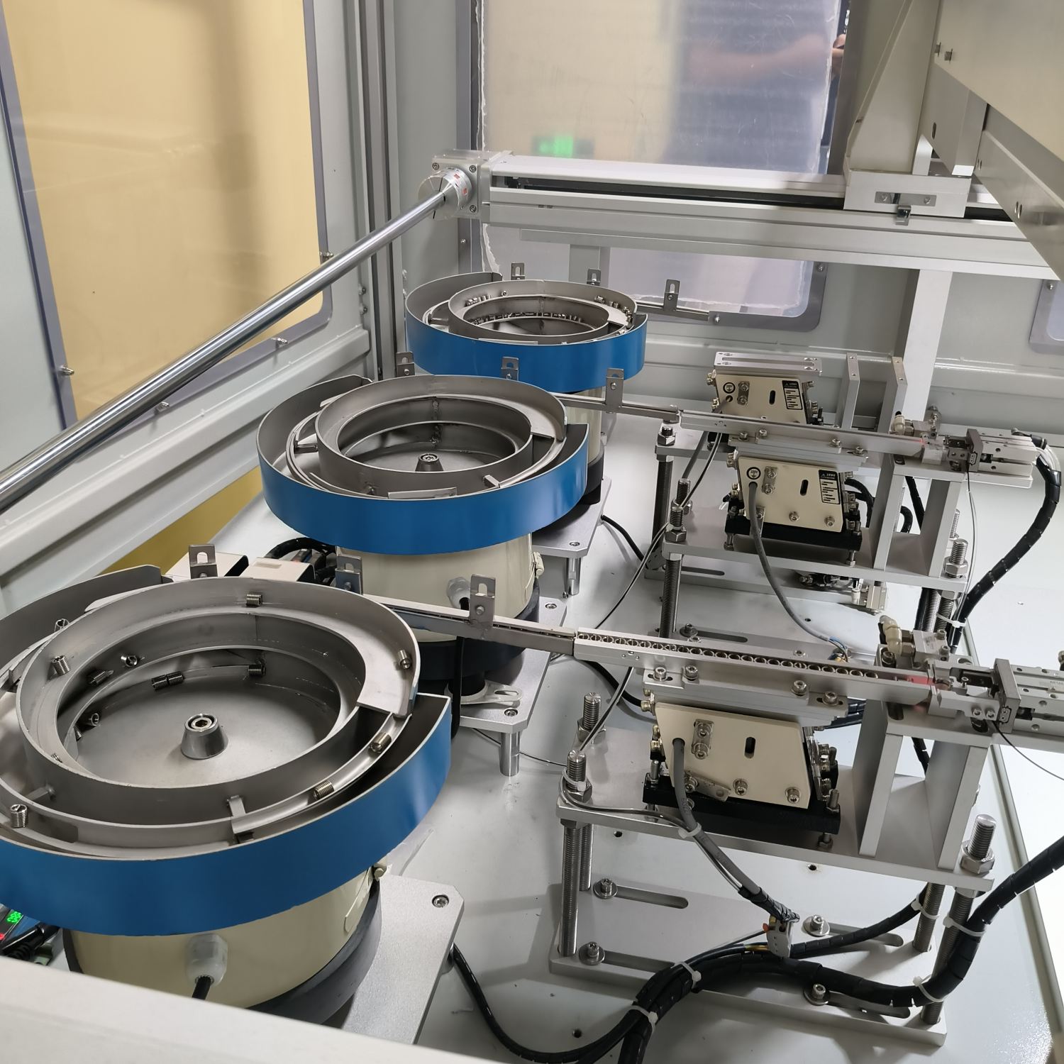 柜式全自动牙套机设备 非标定制机 配备三个振动盘供料 ±0.01mm 定位盲孔螺套全自动组装设备 塑料 / 金属件通用螺套全自动组装机