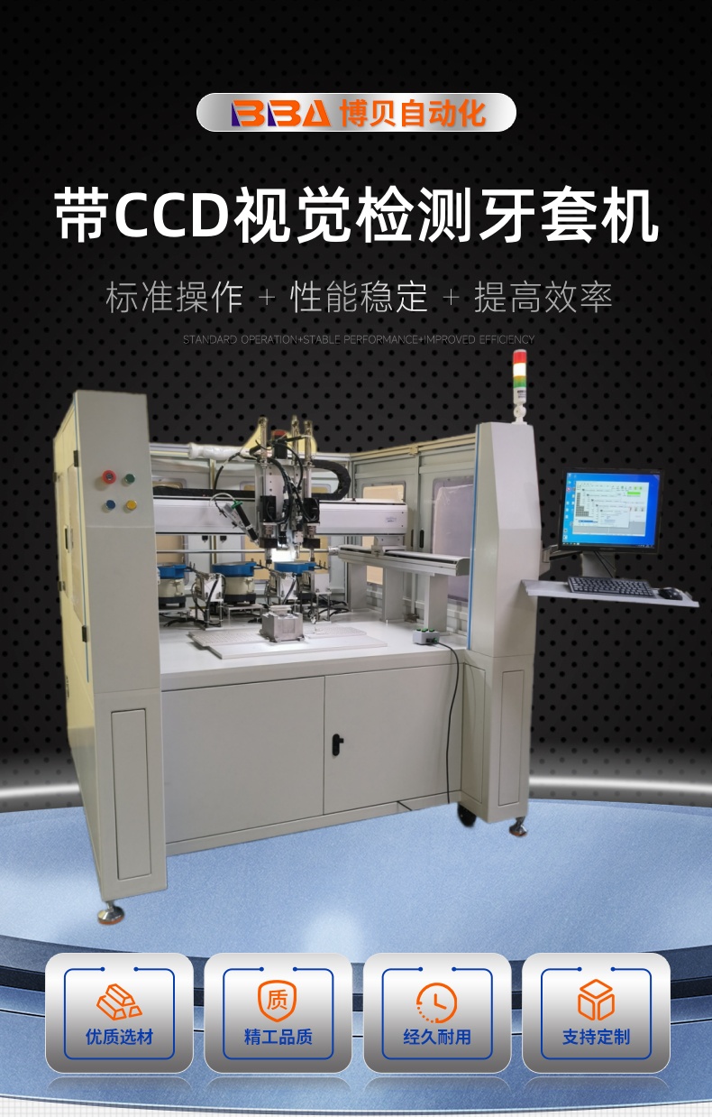 博贝自动化,是专门从事自动螺纹牙套拧紧机,也称为牙套拧紧机,螺纹牙套自动安装工具。钢丝螺纹牙套拧紧机可以自动快速的将牙套精确地拧入产品,同时保证产品的质量。螺纹牙套自动拧紧系统自动拧紧系统振动盘+直振轨道供料,伺服电批拧牙取料,可分正反方向,自适用正反牙,依牙套量身设计。牙套入牙拧紧后自动退牙,可加点胶和深度检测功能,单头或双头作业。