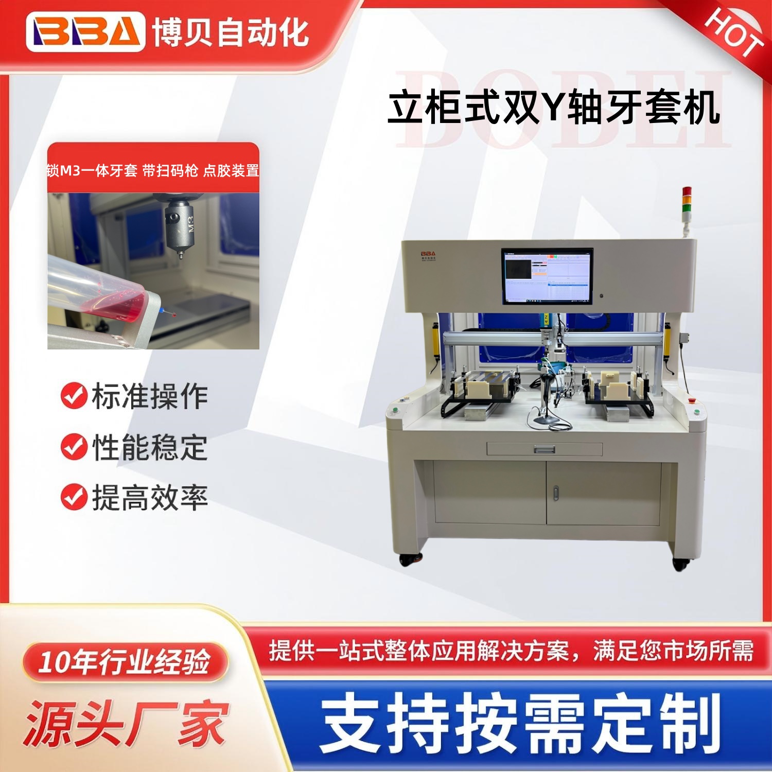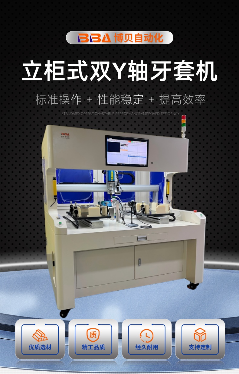 博贝自动化,是专门从事自动螺纹牙套拧紧机,也称为牙套拧紧机,螺纹牙套自动安装工具。钢丝螺纹牙套拧紧机可以自动快速的将牙套精确地拧入产品,同时保证产品的质量。螺纹牙套自动拧紧系统自动拧紧系统振动盘+直振轨道供料,伺服电批拧牙取料,可分正反方向,自适用正反牙,依牙套量身设计。牙套入牙拧紧后自动退牙,可加点胶和深度检测功能,单头或双头作业。