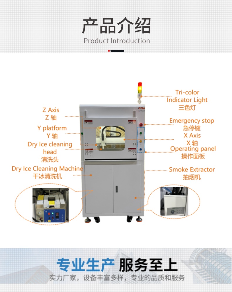 全自动清洗、在线清洗、无水清洗、无损伤、无残留、环保无污染、免拆解、高效除油、除积碳、除胶、除漆、除锈、模具清洗、智能控制、远程操作、自动送冰、连续工作、低噪音